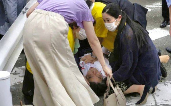 Подозреваемого в нападении уже задержали, его зовут Тэцуя Ямагами, мотивы мужчины выясняются. В Абэ стреляли из дробовика.