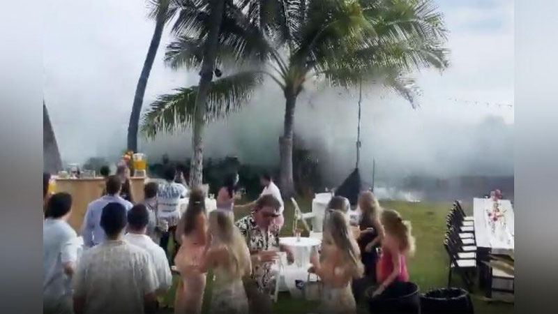 Издалека людям казалось, что волна, идущая на них, не такая большая, однако когда масштаб надвигающейся угрозы стал ясен, бежать было поздно. Пока одни гости пытались укрыться от стихии, другие снимали происходящее на видео. Позже ролик с места событий был опубликован в соцсетях.