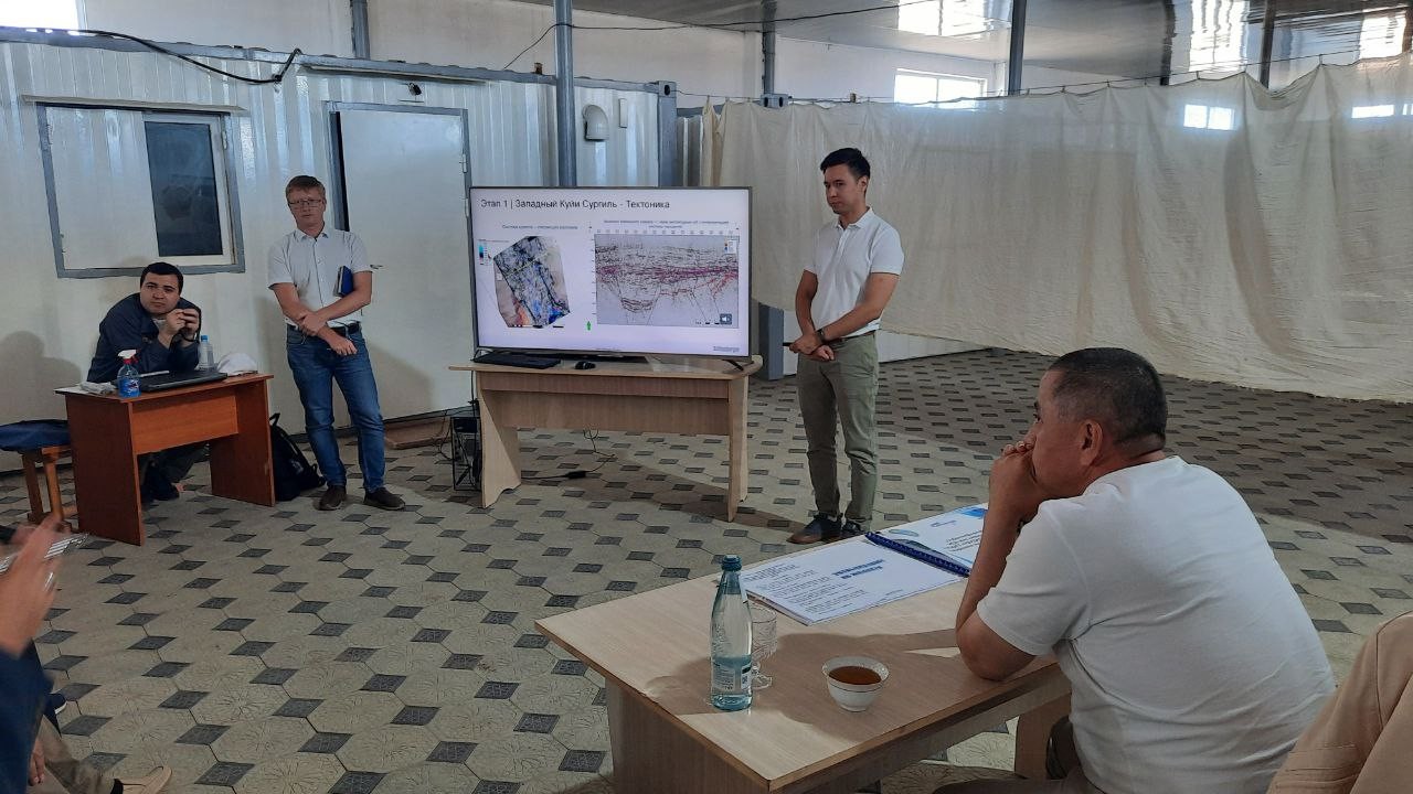 После этого в штабе, расположенном на месторождении «Арслон», с участием членов «Рабочей группы» и подрядных организаций состоялась презентация работ, проводимых в Устюртском регионе.
