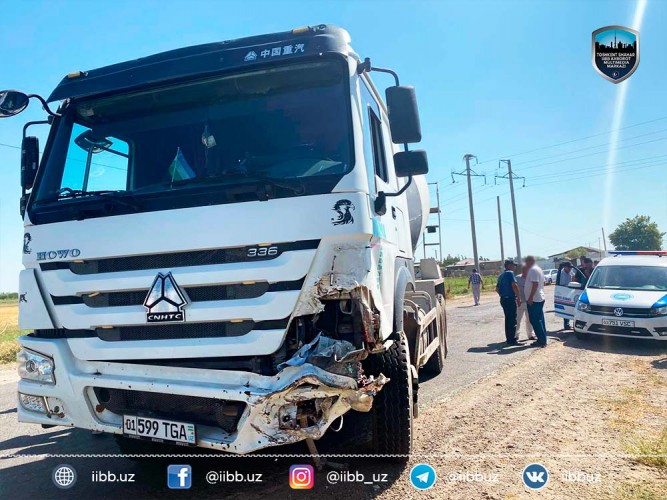 29 июля примерно в 13:00 часов на улице Истиклол в Бектемирском районе Ташкента произошло столкновение двух транспортных средств: легкового автомобиля марки «Matiz», находящегося под управлением водителя 2002 года рождения, и грузового автомобиля (бетономешалки) марки «Howo», которым управлял водитель 1992 года рождения.