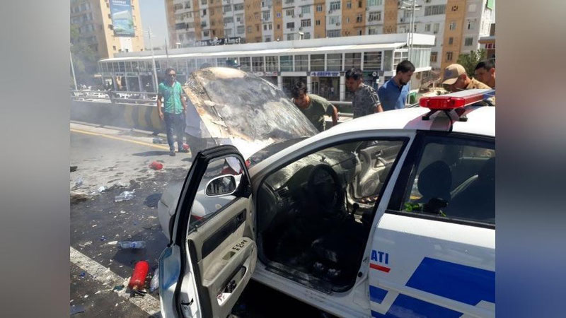 Служебным автомобилем управлял инспектор ДПС ГУБДД ГУВД Ташкента.