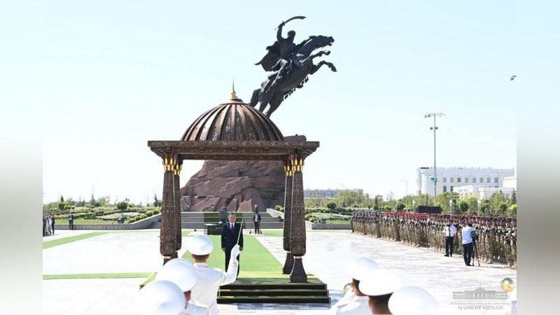 Президент Шавкат Мирзиёев открыл памятник великому полководцу Джалолиддину Мангуберды в городе Ургенче.