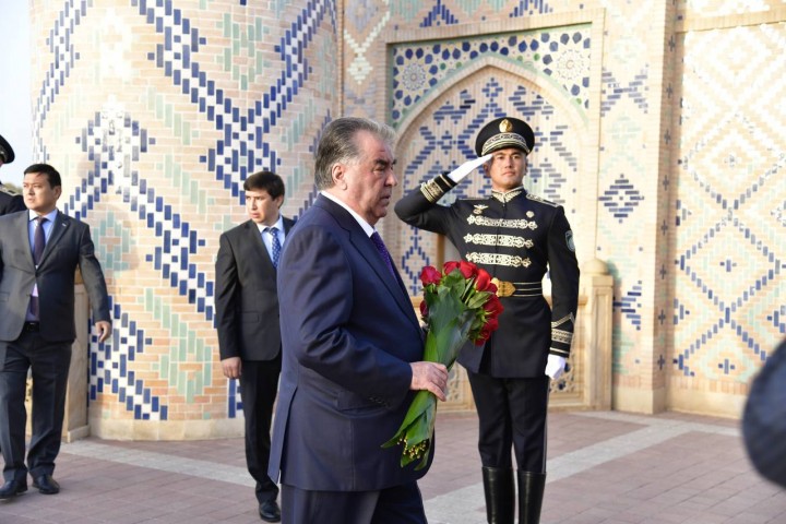 Затем лидер Таджикистана отправился в мемориальный комплекс «Хазрати Хизр», где возложил цветы к могиле Первого Президента Узбекистана Ислама Каримова.