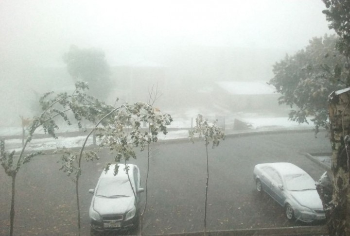 В Шахрисабзе Кашкадарьинской области выпал мокрый снег: