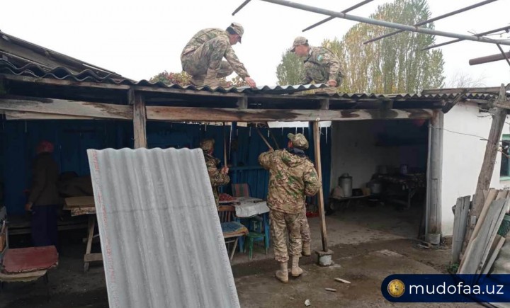 Как отметили в пресс-службе Минобороны, военнослужащие, дислоцированные в районе, обследуют поврежденные дома некоторых махаллей вокруг воинской части и оказывают помощь владельцам домов.