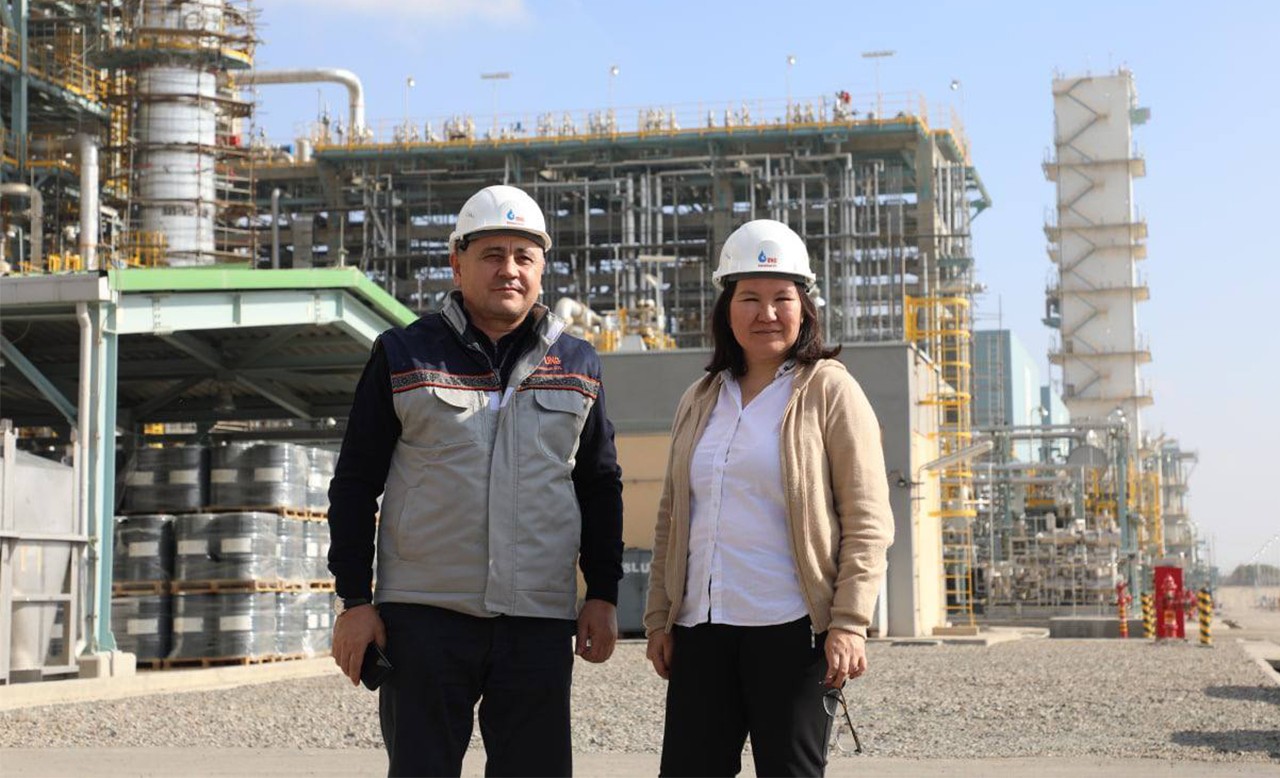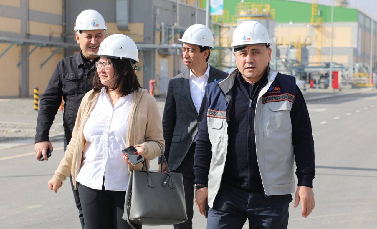 Начальник департамента международного сотрудничества банка «MUFG» Айман Муканова в сопровождении Председателя Правления АО «Узбекнефтегаз» Мехриддина Абдуллаева посетила завод «Uzbekistan GTL» и ознакомилась с состоянием производства синтетических топливных продуктов.