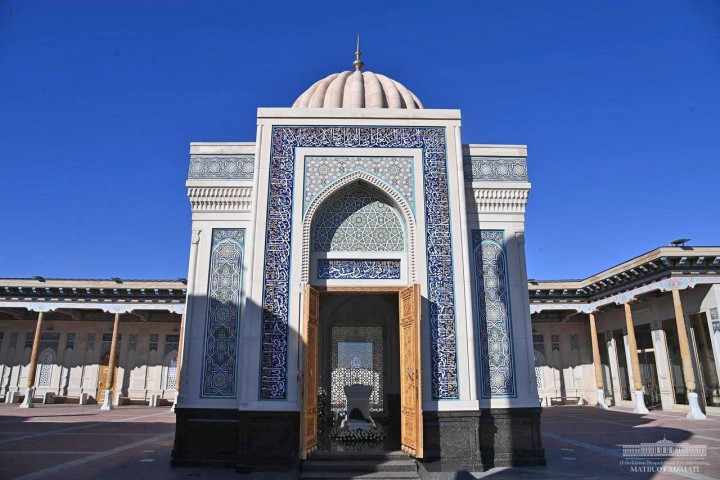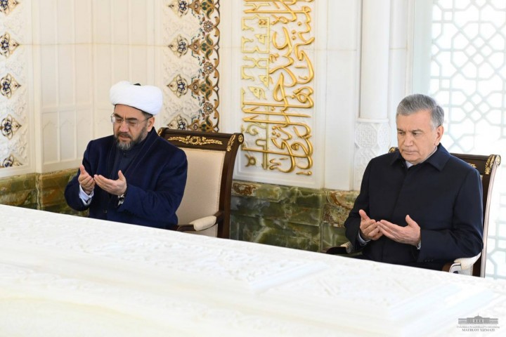 В преддверии мероприятия лидер нашей страны, по традиции, посетил мавзолей Имама Бухари. Были прочитаны суры из Корана и дуа.