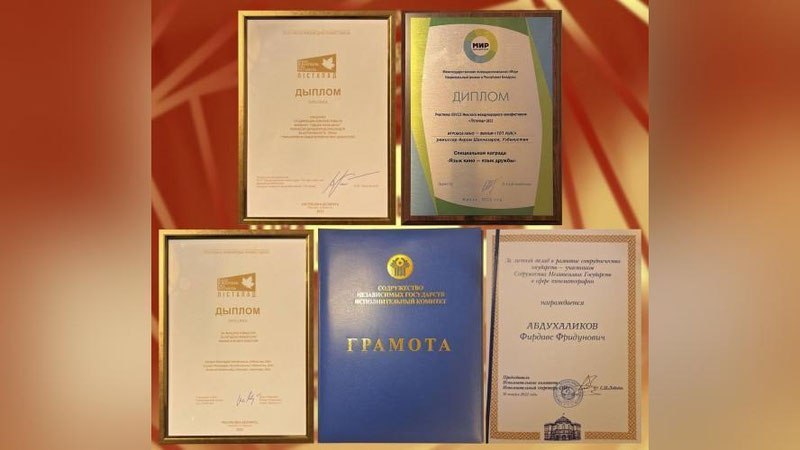 На рабочем заседании кинематографистов стран СНГ Генеральный директор Агентства кинематографии Узбекистана Фирдавс Абдухаликов был награждён почётной грамотой Исполкома СНГ "За личный вклад в развитие сотрудничества государств-участников СНГ в сфере кинематографии ".