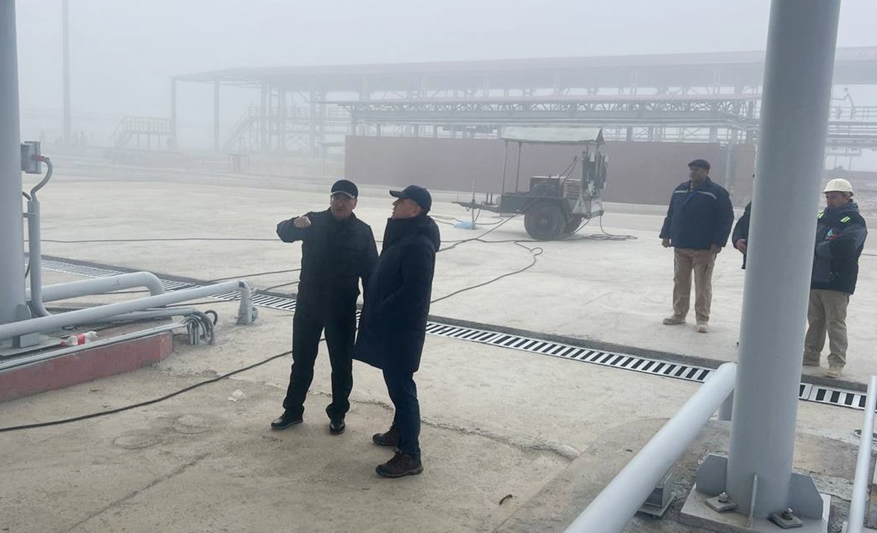 В рамках визита, Председатель Правления ознакомился с ходом выполняемых завершающих этапах работ по проекту реконструкции сливной-наливной эстакады г.Караулбазар.