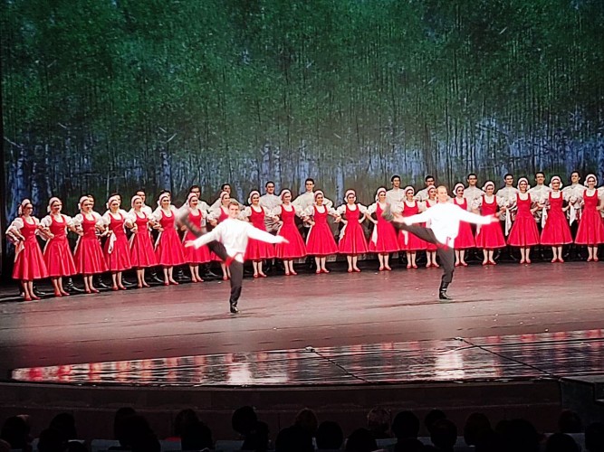 Каждое выступление ансамбля Игоря Моисеева проходит с неизменным аншлагом. Зрители и профессионалы отмечают виртуозное исполнение, отточенную технику и эмоциональную выразительность танцовщиков, которые удивительно талантливо передают неповторимый колорит самобытной многонациональной российской культуры и разных стран мира. И действительно, программа концерта, включившая в себя Адыгейский танец «Тляпатет», сюиту греческих танцев «Сиртаки», венесуэльский танец «Хоропо», танец аргентинских пастухов «Гаучо», узбекский танец с блюдом, а также русские, калмыцкие и молдавские танцы, каждый из которых является отдельным представлением, позволили зрителям за один вечер совершить кругосветное путешествие и увидеть народы разных стран.