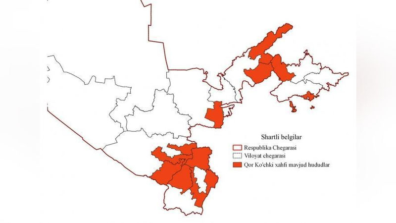 - в Китабском, Шахрисабзском, Камашинском и Дехканабадском районах Кашкадарьинской области;