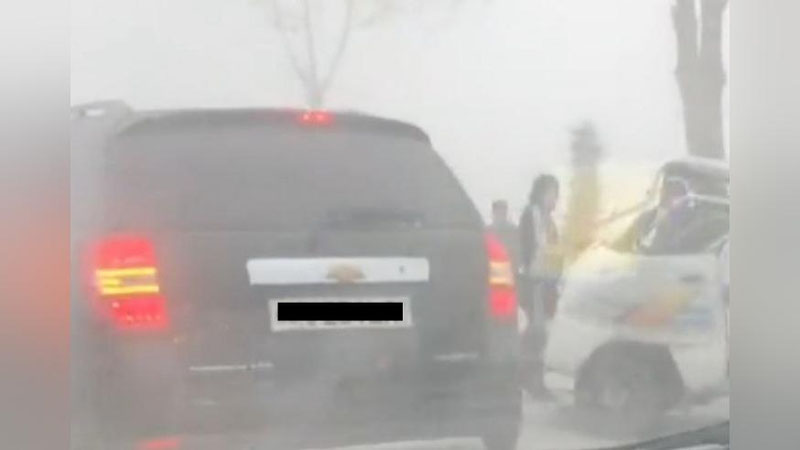 В социальных сетях было распространено видео ДТП с участием десятка автомобилей из-за густого тумана и гололеда на дороге Андижан-Шахрихан.