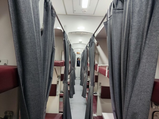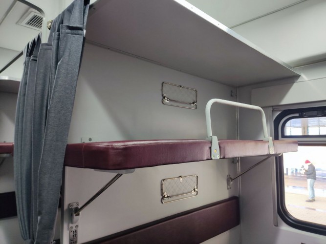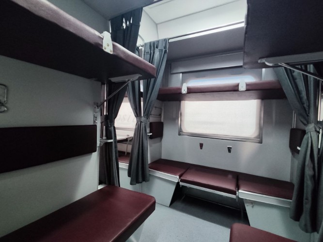 "Данный вагон является модернизированным современным вагоном плацкартного типа и он заметно отличается от своих предшественников. В нем для удобства пассажиров мы создали наиболее комфортные условия. Каждое место здесь оборудовано специальной шторкой, которую можно задёрнуть и превратить свою полку в закрытую от других пассажиров капсулу. Для контроля температуры внутри вагона установлены электронные табло дистанционного управления, оснащенные системой кондиционирования. С целью внутреннего обогрева установлены две различные системы, первая – это обогрев с использованием электрического тока, а вторая – это обогрев другим видом топлива - углем. Во всех отсеках вагона, включая боковые, имеются розетки рассчитанные на 220В, а также USB-порты. На нижних полках появились мягкие спинки. Для подъёма на верхние полки модернизирована ступенька. Теперь подножка больше не выступает в проход, а вписана в металлическое оформление, выполняющее функцию подпорки верхней полки. Количество посадочных мест в плацкартном вагоне осталось прежним – 54 мест. Учитывая то, что железнодорожная сеть Узбекистана расширяется и с каждым годом возрастает спрос на железнодорожные перевозки, в том числе и на пассажирские, то есть и необходимость в увеличении вагонного парка, и вагоны, конечно же, должны отвечать всем требованиям времени. Стоит отметить, что на днях сданы в эксплуатацию три новых плацкартных вагона, и уже на новый год у нас в планах строительство еще 20 новых вагонов".