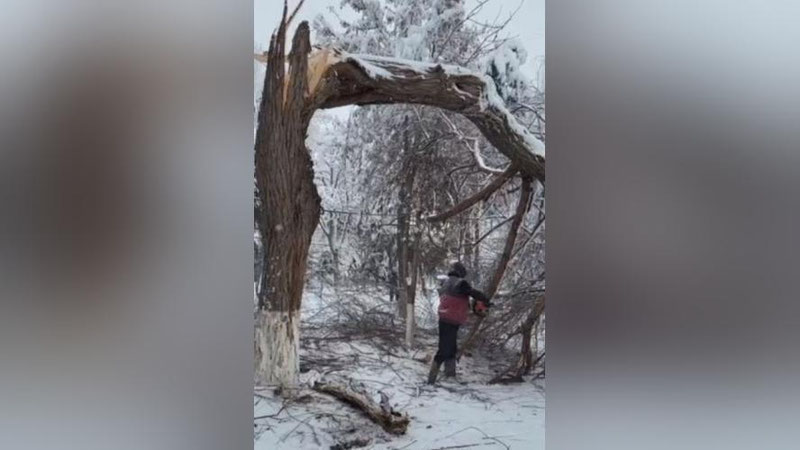 В Ташкентском зоопарке, в связи со снегопадом, начали ломаться ветки деревьев.