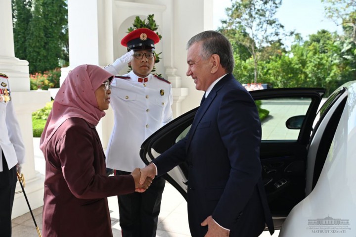 Узбекско-сингапурскому саммиту предшествовала официальная церемония встречи главы нашего государства, прошедшая во дворце Президента Сингапура «Истана».