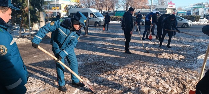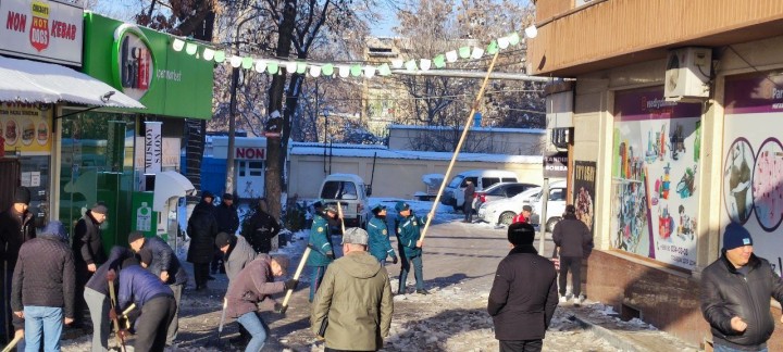 Кроме того, контролировалась работа организаций по уборке снега и сосулек, которые скопились на проезжей части и тротуарах в микрорайонах «Домбирабад» и «Мевазор».