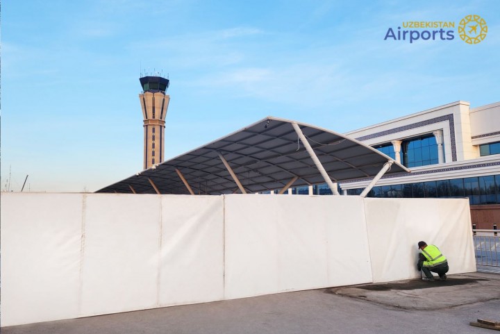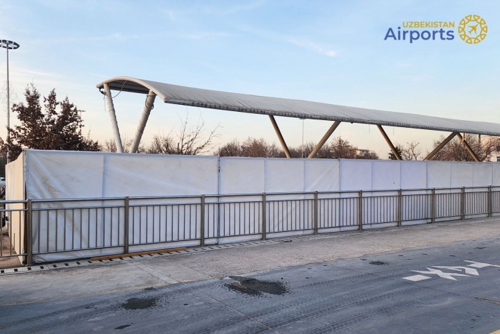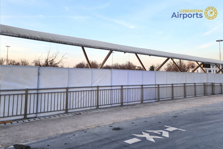 Перед терминалом прилета международного аэропорта «Ташкент» начато строительство зоны для встречающих.
