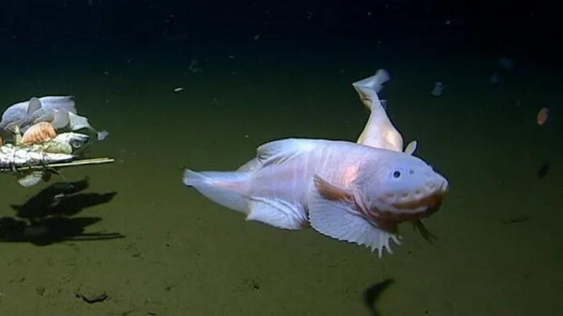 Видео записал автономный модуль, спущенный в желоб Идзу-Огасавара на юге Японии. Ученые считают, что рыба-улитка находится на максимальной глубине, на которой может выжить любая рыба.