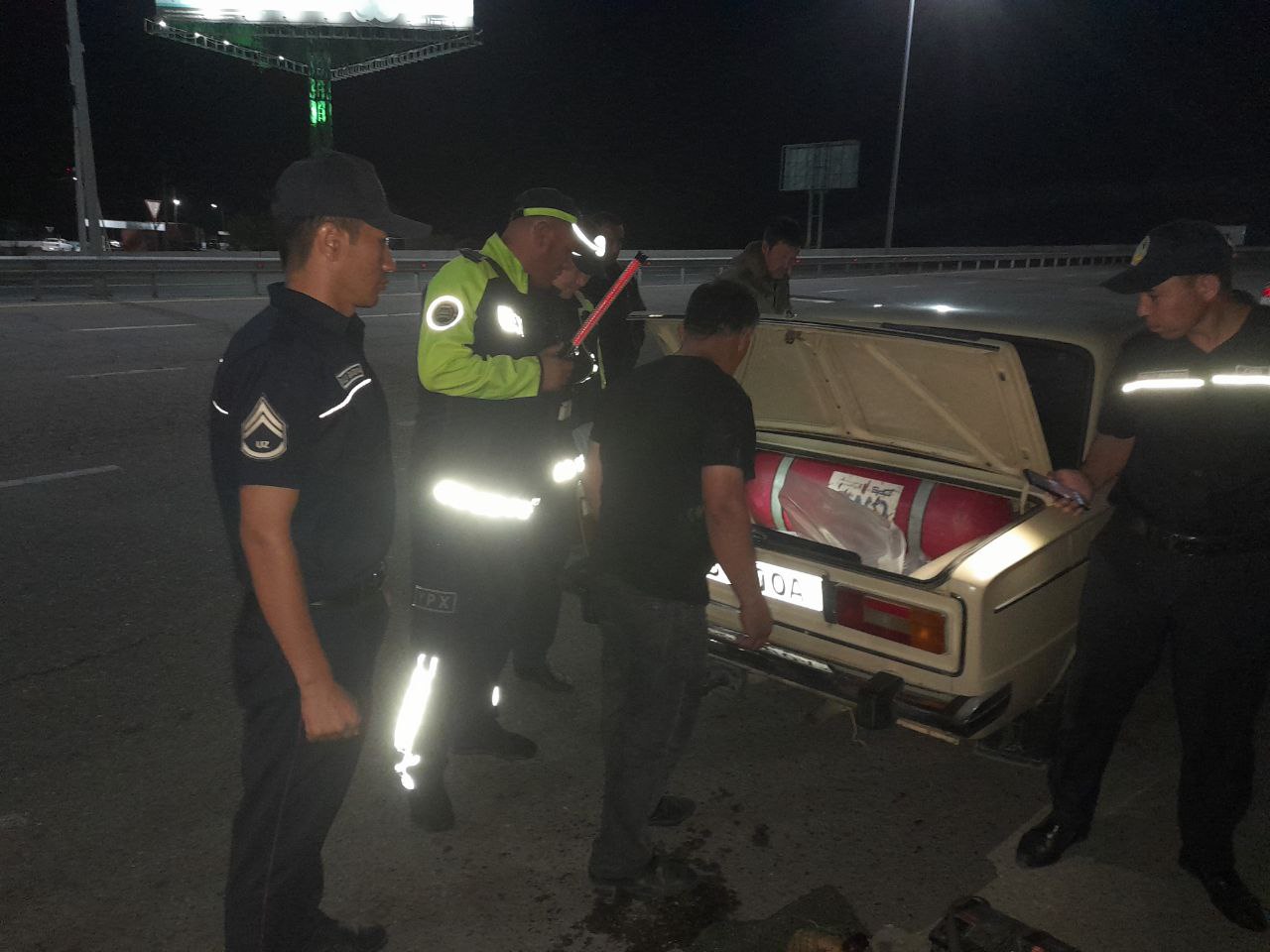 Во время рейдового контроля в селе Каирма Ахангаранского района был остановлен автомобиль марки ВАЗ-2106, направляющийся по маршруту Ахангаран - Ташкент.