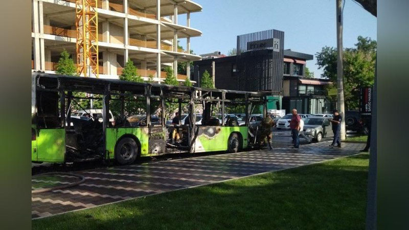 На кадрах с места события можно увидеть, что автобус сгорел полностью.