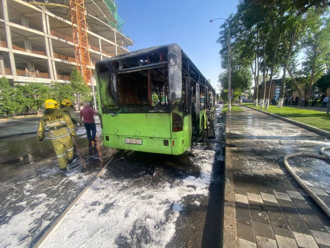 В соцсетях распространились фото и видео горящего пассажирского автобуса в Ташкенте.