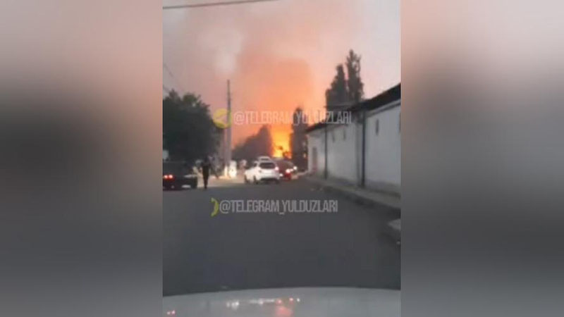 Пожар, произошедший в воскресенье в 20:06 на территории махалли "Бобур", сняли на видео очевидцы:
