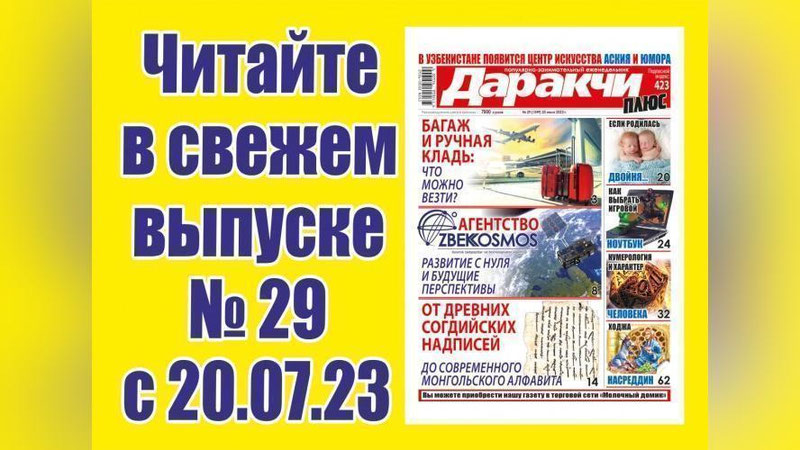Приобрести новый номер газеты можно в киосках "Матбуот таркатувчи" и торговой сети "Молочный домик".