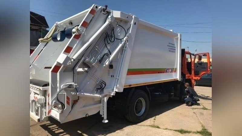 Мусоровоз разгрузил в грузовой кузов мусорный контейнер и, направившись к следующему контейнеру, наехал на девушку, проходившую спереди спецтранспорта.