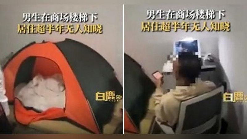 Житель Шанхая разместил свою палатку, стол, компьютер и стул под лестницей и оставался незамеченным месяцами, несмотря на то, что каждый день выходил заряжать свои устройства. Один охранник наткнулся на него несколько недель назад, но позволил ему остаться из жалости, когда мужчина заявил, что ему "нужно место для учебы". Правда, вскоре нелегального жильца заприметил другой охранник, который не купился на жалостливые мольбы. Он выдворил китайца вместе с его пожитками на улицу.