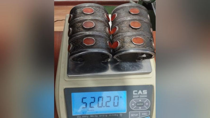 По заключению искусствоведческой экспертизы, браслеты весом более 500 граммов были изготовлены вручную из смеси никеля, меди, олова и серебра еще в начале XX века, сообщает пресс-служба управления ГТК по Хорезмской области.