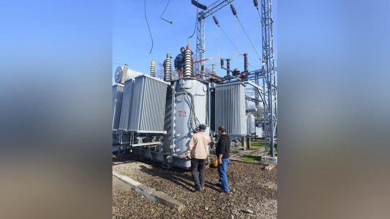 Оперативная бригада устраняет неисправность на подстанции "Сагбон" на 35/110/10 кВА в Алмазорском районе Ташкента.