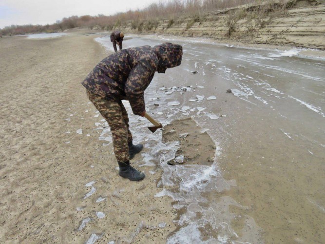 А территорию Кызылкумского государственного заповедника при Министерстве экологии, охраны окружающей среды и изменения климата очищают от льда. Целью является обеспечение питьевой водой диких животных, обитающих в заповеднике.