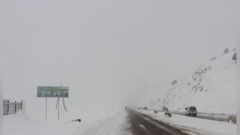 Как говорится экстренном сообщении Узгидромета, на данном участке временами сильные осадки, туман, ухудшение видимости до 50 м, в связи с усилением ветра до 15-20 м/с на дороге возможны снежные заносы, гололедица.