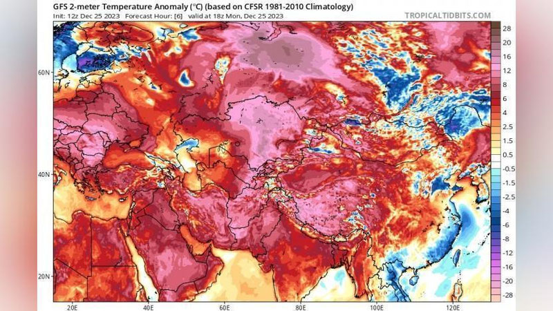 К пятнице, 29 декабря, ведущие потоки изменятся на северо-западную составляющую, и в условиях сформировавшегося приземного антициклона с малооблачными ночами, это приведет к существенному выхолаживанию земной поверхности. В результате, в среднесуточном режиме температура воздуха в Центральной Азии максимально приблизятся к своей климатической норме, пишут "Метеоновости".