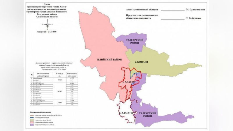 "Реорганизовать Илийский район Алматинской области путем выделения из него села Жетыген. Отнести село Жетыген Илийского района Алматинской области к категории города областного значения и переименовать его в город Алатау", - говорится в документе.