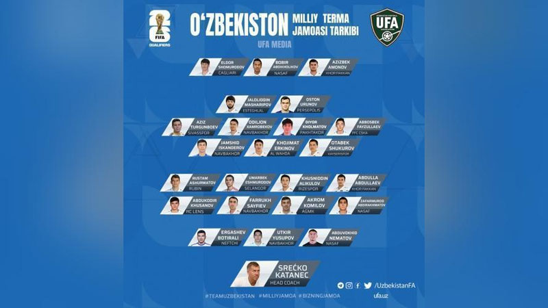Главный тренер сборной Узбекистана по футболу Сречко Катанец объявил футболистов, которые будут вызваны на матчи объединенного отборочного турнира на Чемпионат Мира и Кубок Азии против сборной Гонконга.