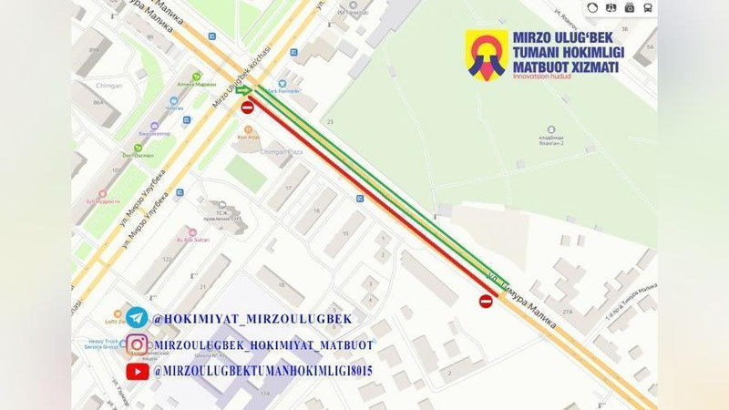 С 5 часов утра 29 марта до 8 апреля по улице Тимура Малика в сторону улицы Мирзо Улугбека будут проводиться ремонтные работы.