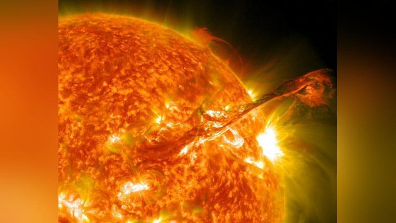 Как пишет Spaceweather.com, точками выбросов стали три солнечных пятна и большая магнитная нить — длинная плазменная петля, расположенная между пятнами. Мегавзрыв произошел на обращенной к Земле части солнечной поверхности.