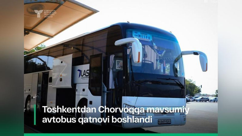 В целях создания дополнительных удобств иностранным и местным туристам, прибывающим в Ташкентскую область, из столицы в Бостанлыкский район Ташкентской области (зона свободного туризма "Чарвак") организовано сезонное автобусное движение по графику.