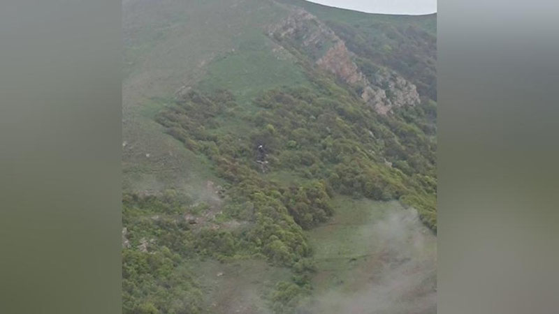 Местные агентства уже опубликовали кадры, на которых вертолет Раиси частично видно среди деревьев на холме.