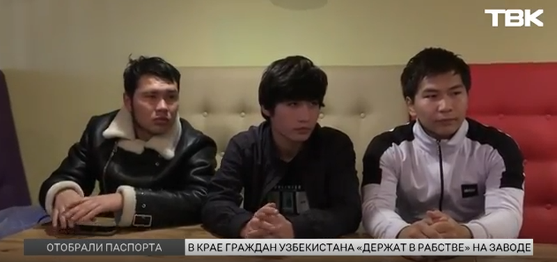 "Земляк купили парням билеты, помог с документами, приобрел робу, постельное белье, и все это в долг. На пилораме дело не пошло. По какой причине – разобрать сложно. Тогда человек по имени Арабой передал работников вместе с паспортами на тот самый бетонный завод. Там, говорят гастарбайтеры, они работали по 14 часов в день, на еду давали 2 тысячи рублей в неделю. На предприятии, по словам мигрантов, остаются еще 6 их соотечественников", - говорилось в репортаже местного телеканала.