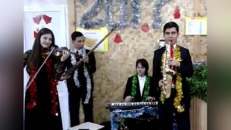 На входе в магазин их встречали четверо музыкантов, устроивших небольшой новогодний перфоманс. В исполнении ансамбля звучала музыка на новогоднюю тематику.