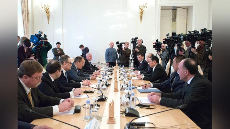 Встрече предшествовала беседа Министра иностранных дел Российской Федерации Сергея Лаврова с руководителями делегаций.