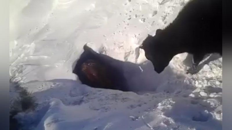 Как отмечает издание, послушные животные друг за другом аккуратно спускаются в заснеженную яму, будто сурки прячутся в норку. Предположительно, коровы спускаются в сарай, который завалило снегом.