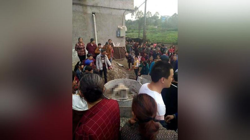 Страшная трагедия произошла в Китае. Там две трехлетние девочки, играя, залезли внутрь промышленной бетономешалки.