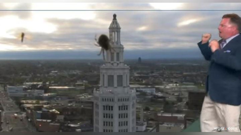 Курьезный случай произошел на одном из телеканалов США: ведущего напугал паук, неожиданно появившийся в кадре.