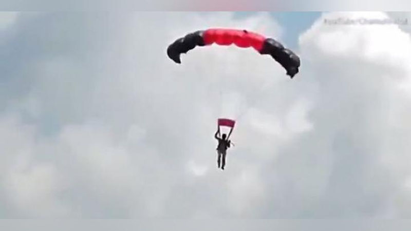 На Шри-Ланке женщина на парашюте столкнулась с линией электропередач.