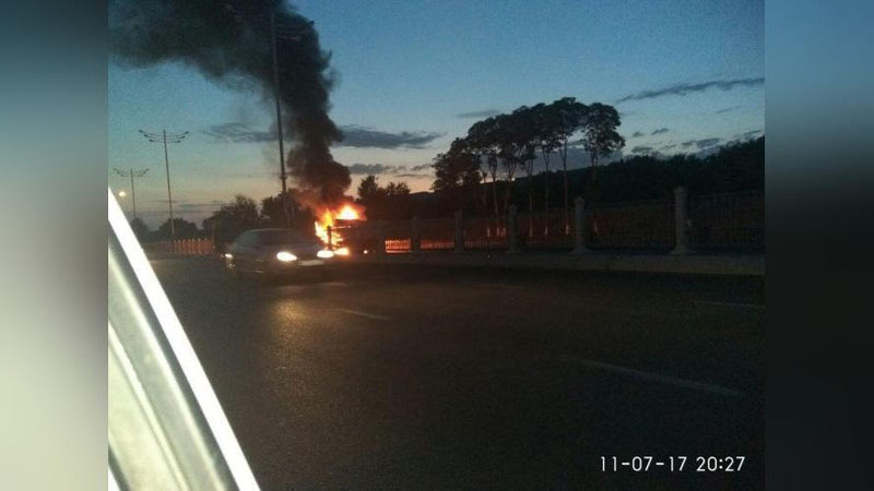 Инцидент произошел в 20:22 на новой дороге Махтумкули напротив бывшего завода ТАПОиЧ. Как уточнили нам в УПБ ГУВД г.Ташкента, во время движения вспыхнули моторная часть и кабина грузовика. В 20:35 возгорание было потушено прибывшими на место сотрудниками пожарной бригады.