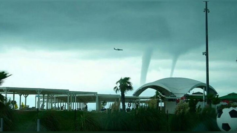 Пассажирский самолет приземлился в российском Сочи во время того, как поблизости бушевали несколько смерчей.