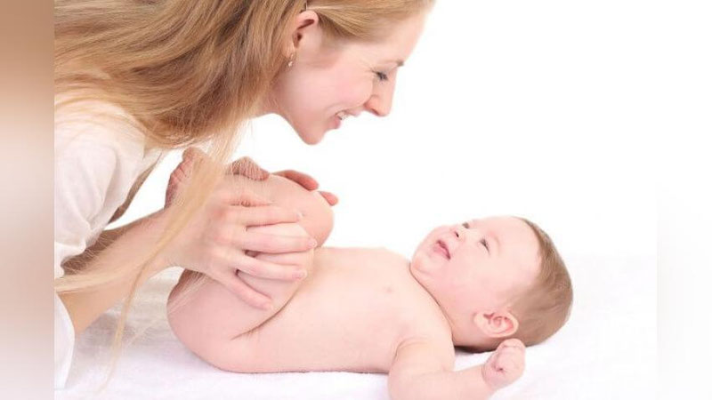 - разная длина ножек ребенка. Распознать укорочение с помощью измерительной ленты очень тяжело, поэтому согнутые в коленных и тазобедренных суставах ножки симметрично прижимают к животу. Со стороны диспластического поражения колено окажется ниже, чем со здоровой;
